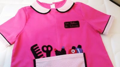 Este es el disfraz que le hice a Laura, es muy sencillo ...... simplemente un babi con los complementos en fieltro pegados en el bolsillo.